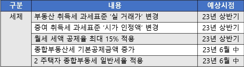 23년도 종합부동산세 등 보유세 부담이 줄어들 예정입니다.