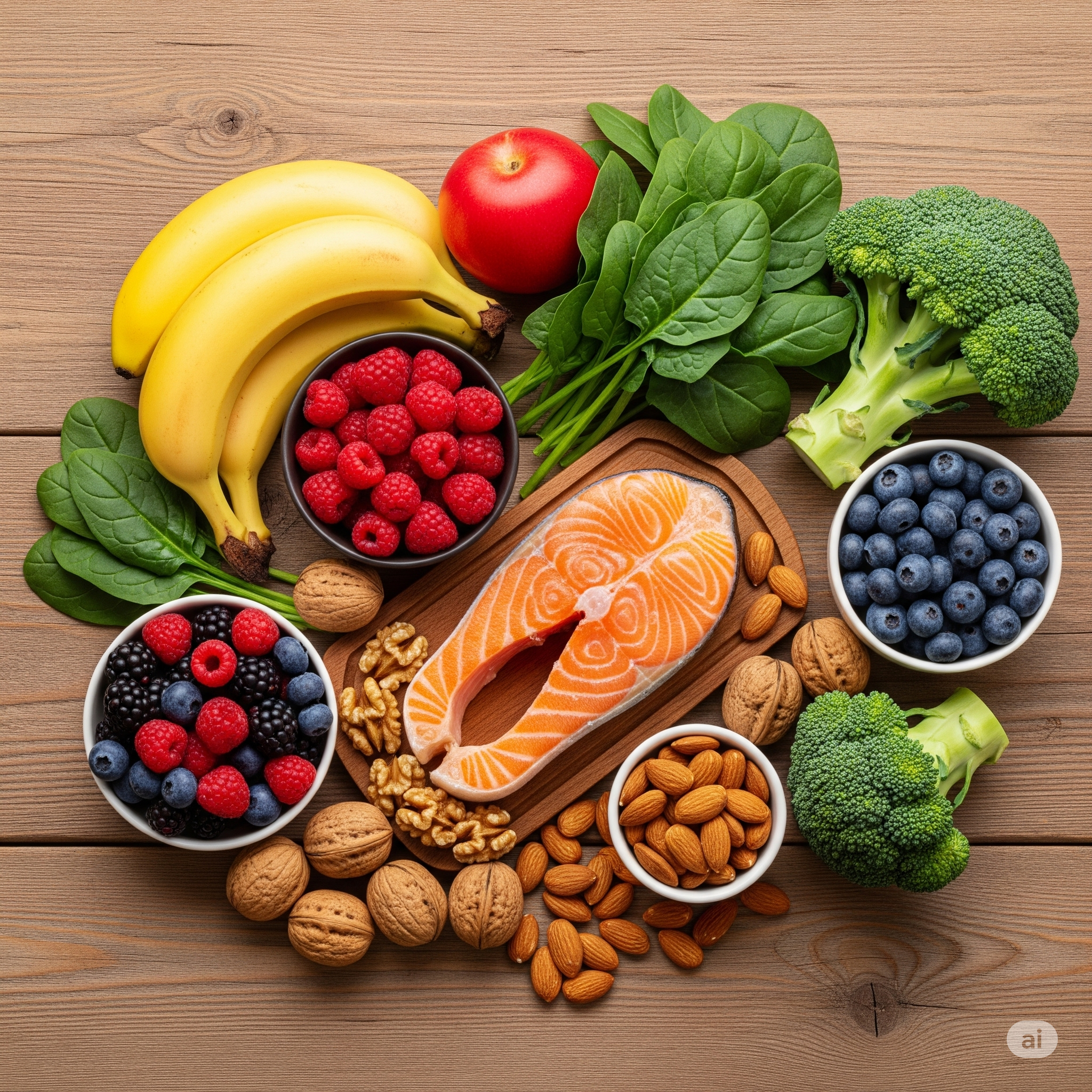 - 계란 노른자, 견과류(아몬드, 호두), 귀리, 연어, 버섯 등