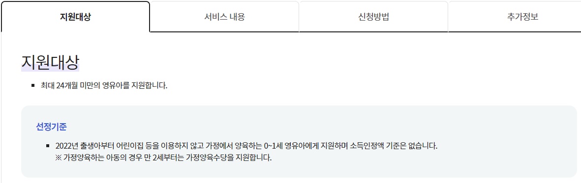 구분 2022년(영아수당) 2023년(부모급여) 2024년(부모급여 확대)